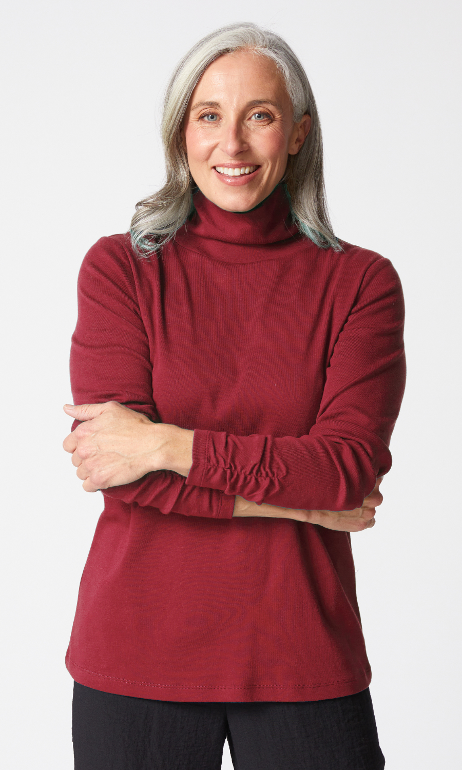 Habitat Cozy Rib Ruched Turtleneck in Wine