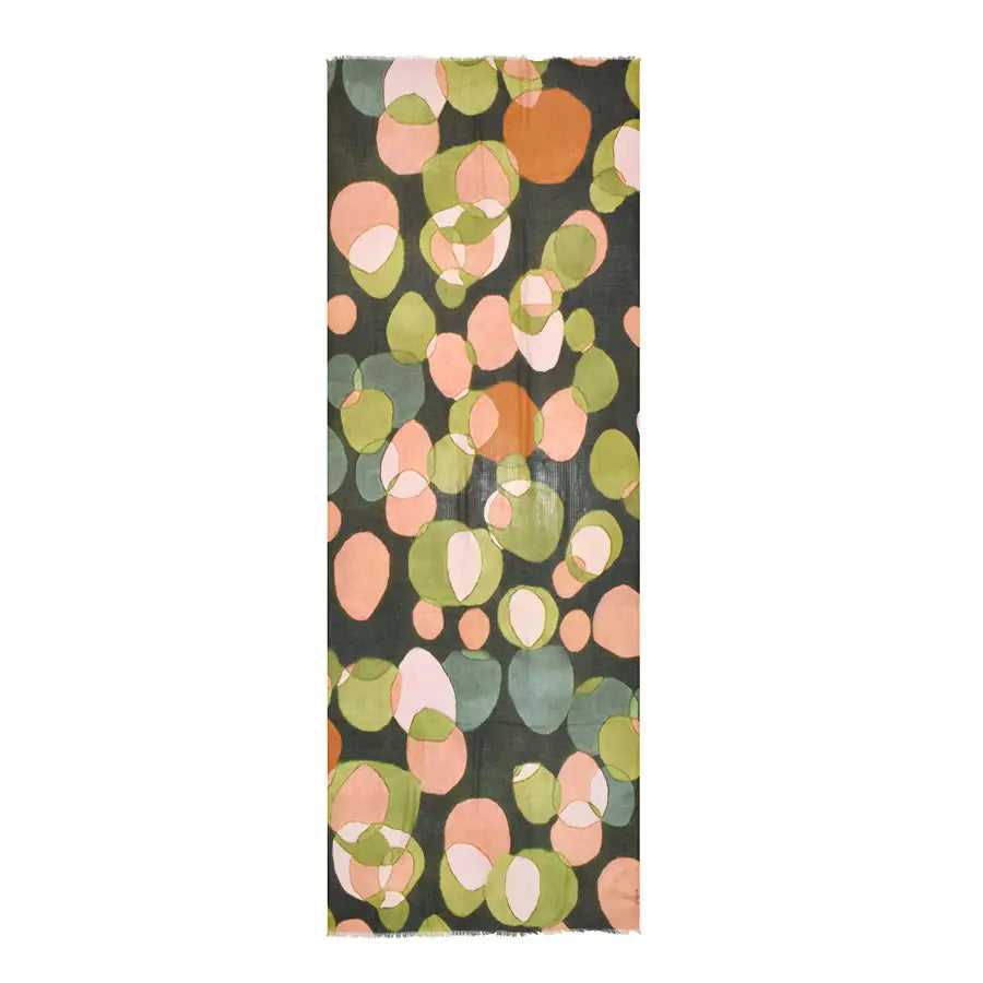 This scarf, with its delicate overlapping floating dots, brings a modern and whimsical feel to your wardrobe. Made from lightweight modal, it’s the ideal accessory to transition between seasons, offering just the right amount of warmth without the bulk. Perfect for layering or wearing on its own, this scarf adds a touch of sophistication to any outfit. Fabric: 100% Modal Size: 27.5" x 71"