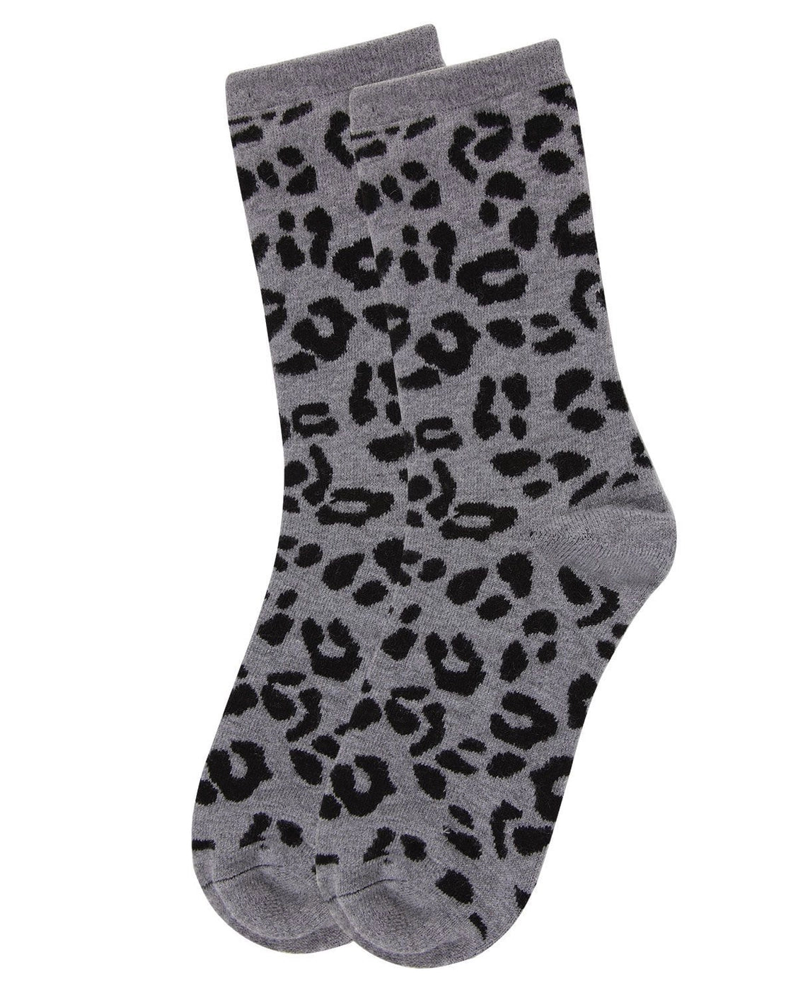 Memoi Leopard Print Cashmere Crew Socks