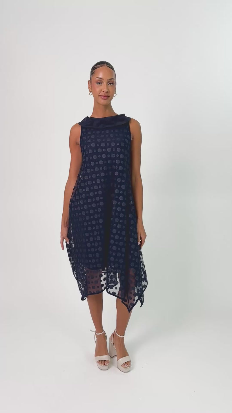 Joseph Ribkoff Dot Embroidered Cowl Neck Dress in Navy