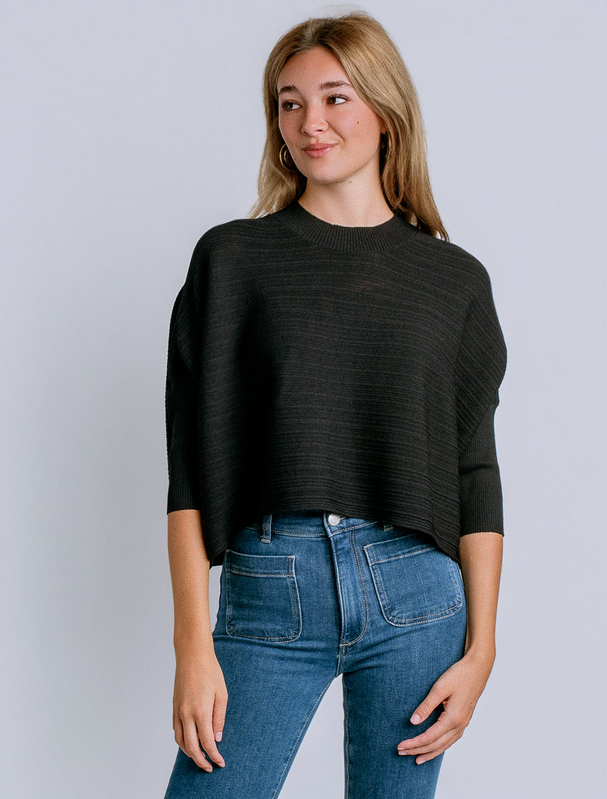 Meet your new go-to layer: a boxy cropped silhouette with a mock neck that means business and 3/4 ribbed sleeves that actually stay put. The Kerisma Aja Sweater has 3D multi rib pattern that brings effortless, oversized vibe without the fuss—perfect for throwing on over everything in your closet.