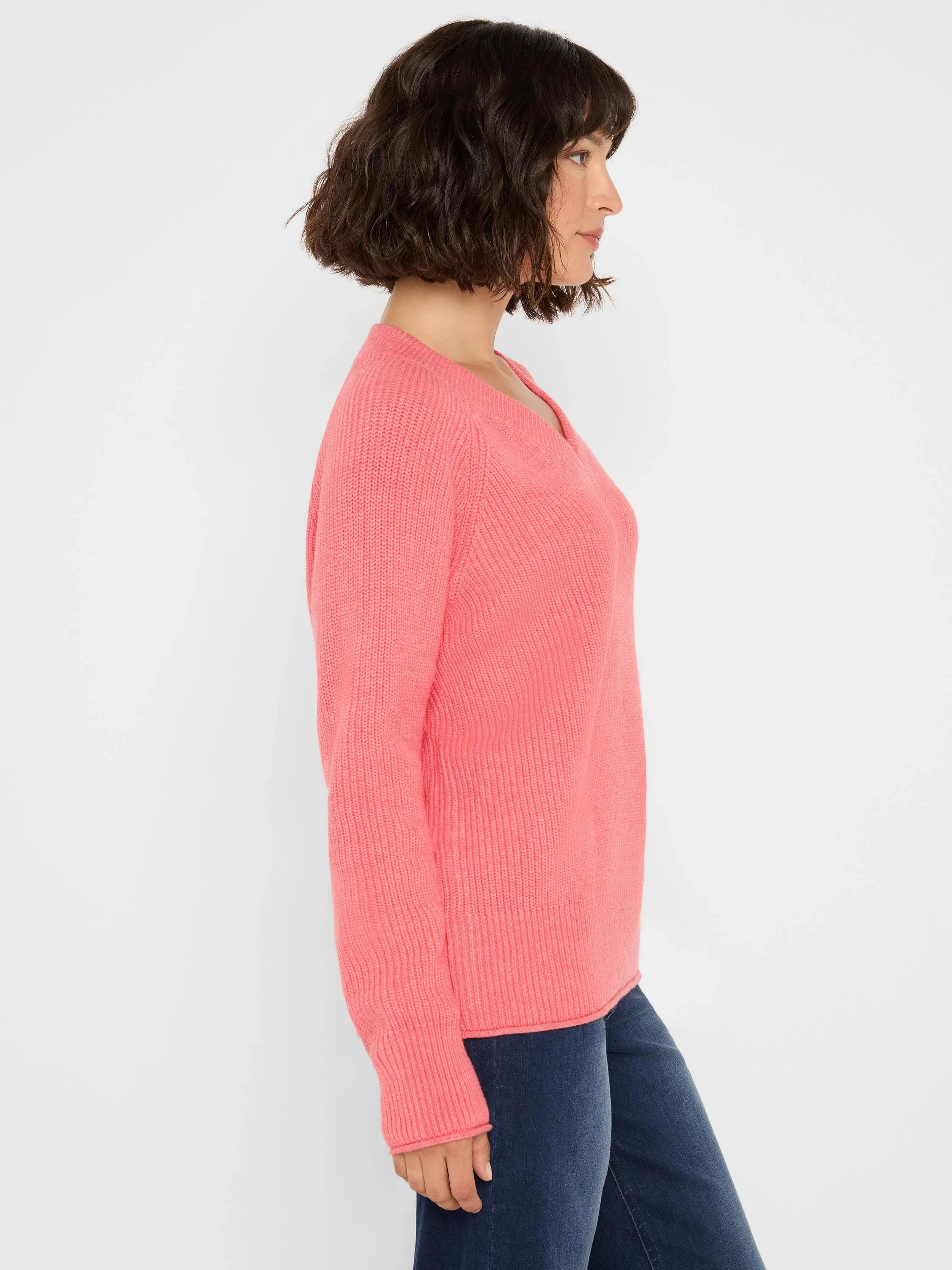 Nic + Zoe V Neck Shaker Stitch Sweater in Snapdragon