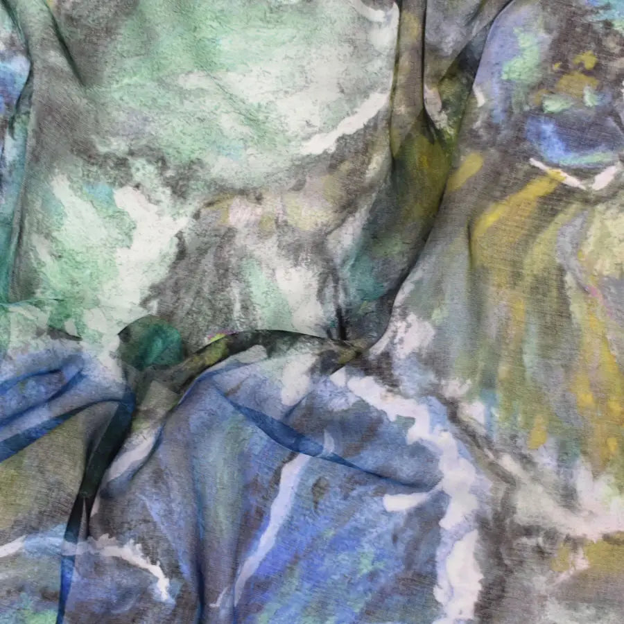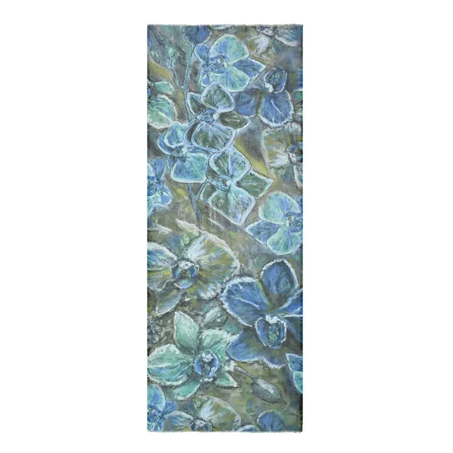 Wrap yourself in softness and subtle color with this micro modal scarf, designed with overlapping painterly florals that feel like wearable art. Lightweight and breathable, it transitions effortlessly from season to season, making it a favorite no matter the weather. Size: 27.5" x 71" Fiber: 100% Micro Modal Care: Dry Clean Only