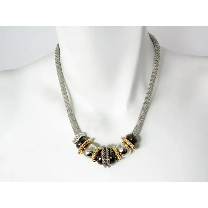 Erica Zapp Mesh Necklace with Metal Beads & Textured Spacers
