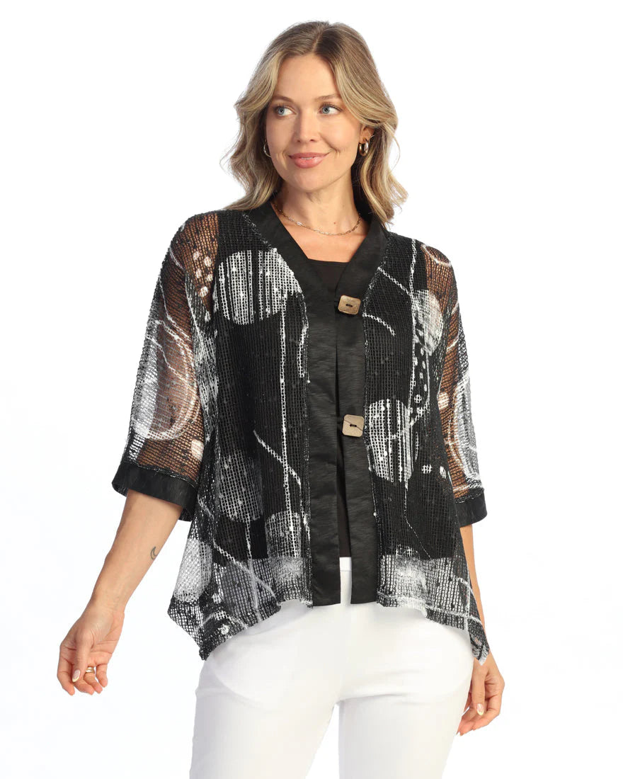 Jess & Jane Mesh Cardigan in Black/White