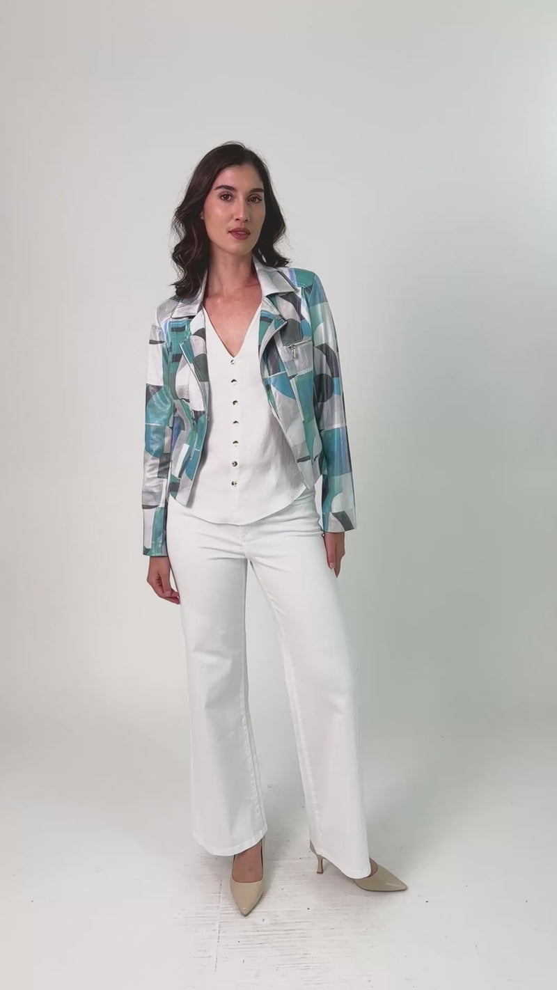 Experience the perfect blend of style and functionality with the Joseph Ribkoff Biker Jacket. Featuring a convenient zipper closure and practical pockets, this waist-length, regular fit jacket is designed for both casual outings and night events. The collared, long-sleeve design with a straight-sleeve cut adds an edgy touch, while the abstract pattern ensures you stand out in any crowd. Ideal for everyday wear.