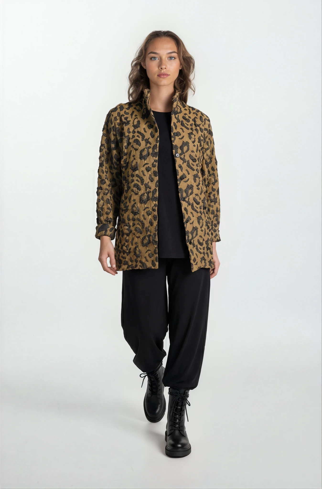 Step into effortless style with the Sylvia Jacket | Leo Featuring a snap front and a one-of-a-kind quilted pattern, this animal printed jacket adds a playful twist to your look. With long sleeves, a classic collar, and a straight hem, it delivers both comfort and cool vibes all day long.