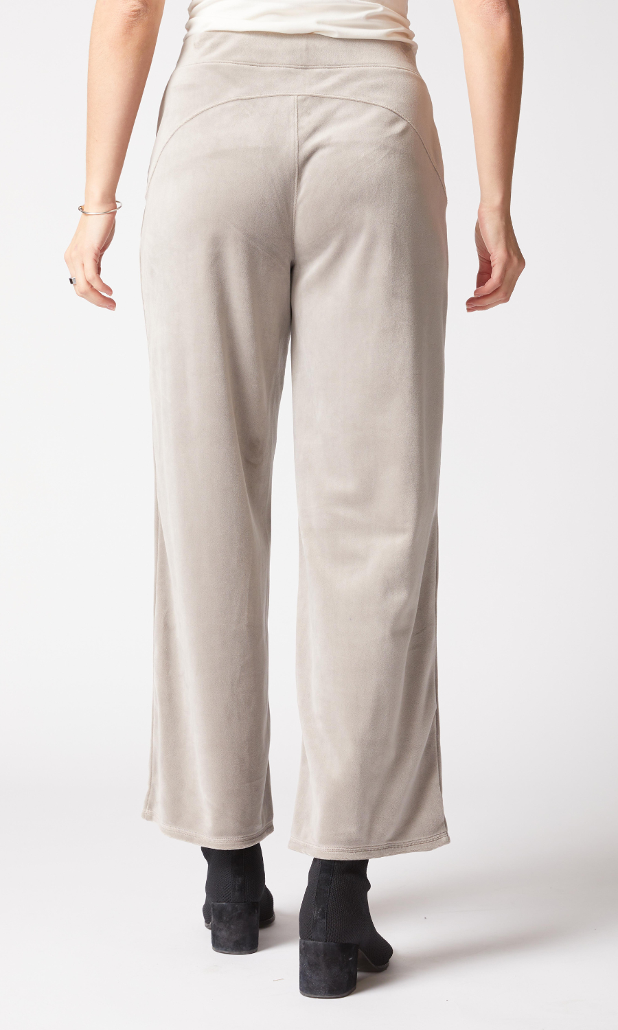 Polished enough to wear out, cozy enough to stay in—the Habitat Zen pant is your elevated take on loungewear. Crafted from ultra-soft stretch velour in a versatile latte hue, it brings warmth and sophistication to everyday dressing. The clean-lined wide leg silhouette drapes beautifully, while the pull-on waistband sits comfortably at the natural waist. Finished with two slash pockets and a 28" inseam, it’s the kind of pant that moves with ease from relaxed mornings to out-the-door moments—effortlessly.