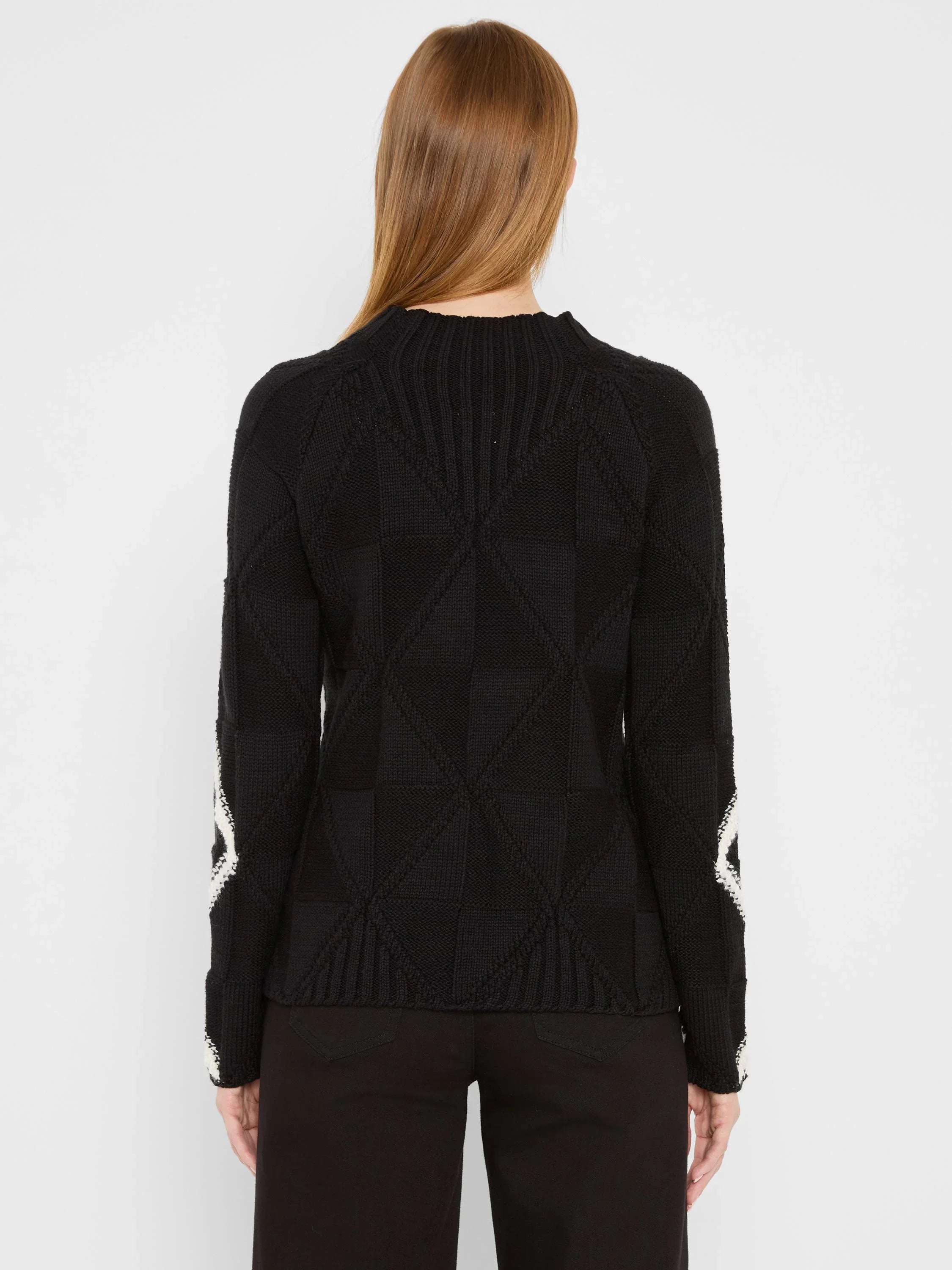 Dashing through the snow (or around town) the Dashing Diamonds sweater adds a little extra texture to your every day. An easy pullover with a cozy funnel neck, the contrasting patterns on the sleeves and textural diamonds in the body make her an outfit highlight, whether you're wearing her with jeans or something a little more dressy. Mindfully Made from fully fashioned knitwear that eliminates textile waste.