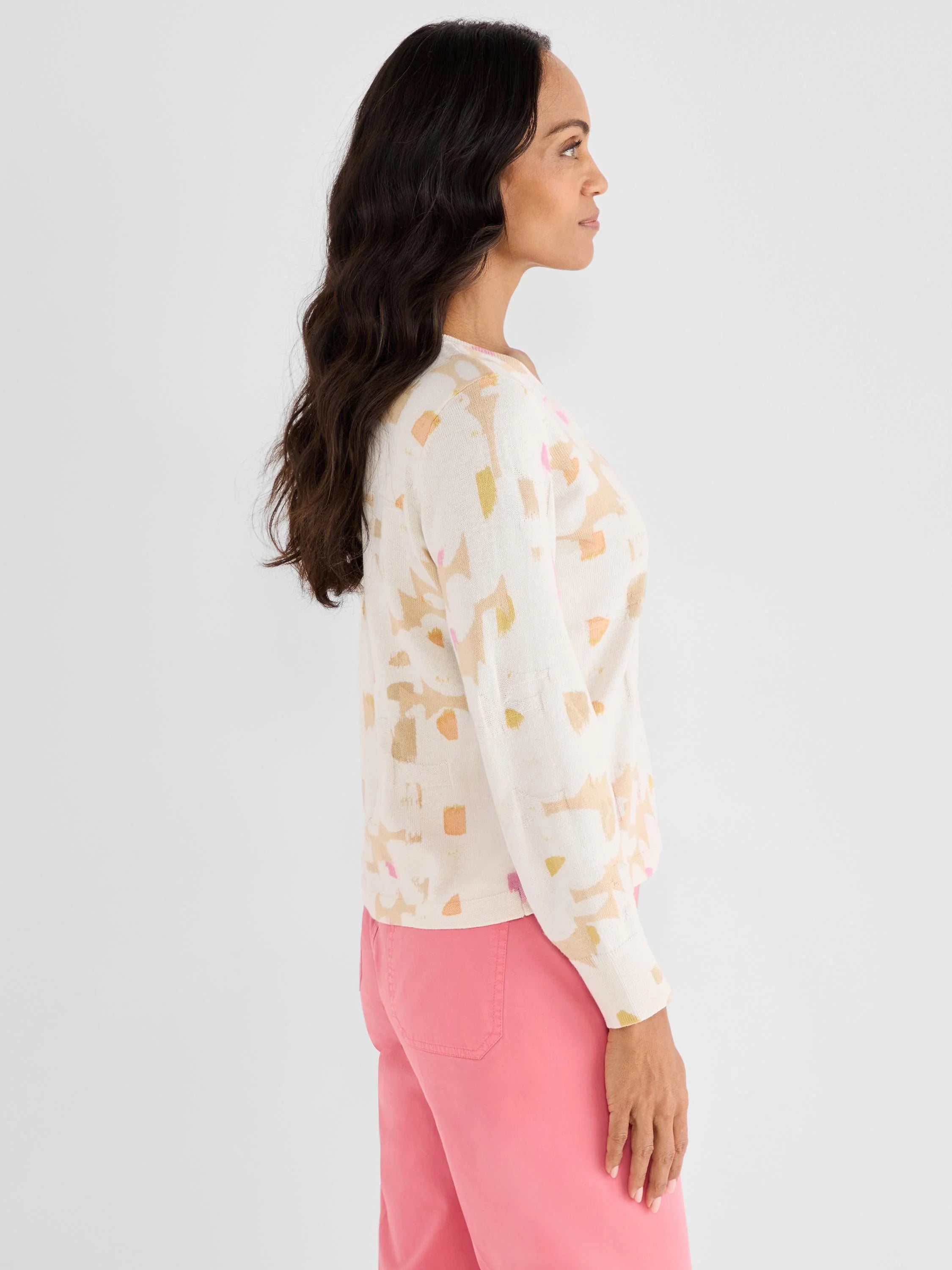 In the mood for mod? A knit-in stitch turns our Mod Mix print on its head, creating a relief of the geo dot design in the body of this sweater. The result is a colorful, yet subtle, style that stands out from the rest of your closet. Made from plush zephyr yarn for a soft hand feel.