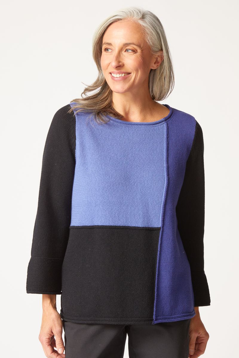 Nic + Zoe Knit Stitch Pure Cotton Sweater in Blue Multi