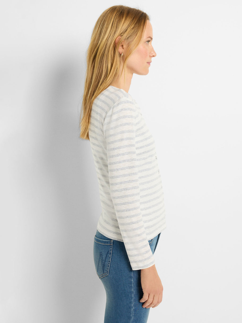 Nic + Zoe Striped Snap Front Cardy in Grey