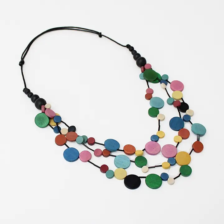 Multi Color Serena Wood Disk Necklace