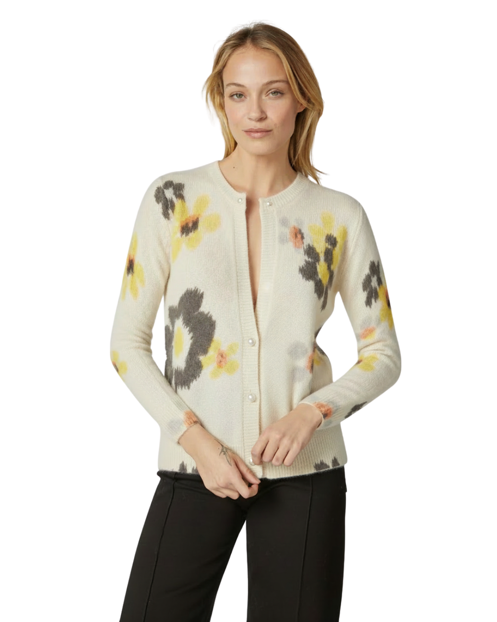 Nic + Zoe 4 Way Cardy in Pixel Knit in Cream Multi