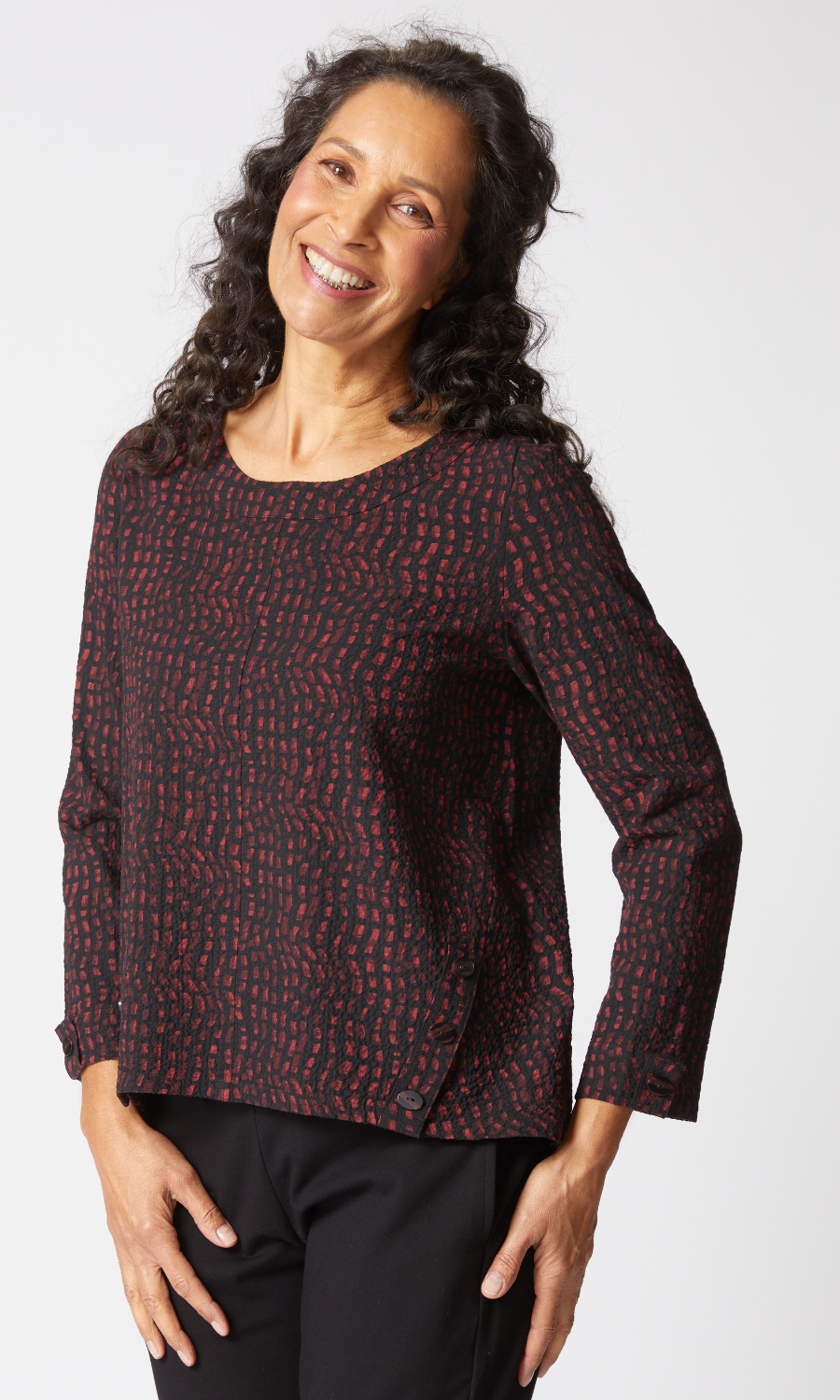 Habitat Crinkle Crepe Mosaic Pullover in Wine