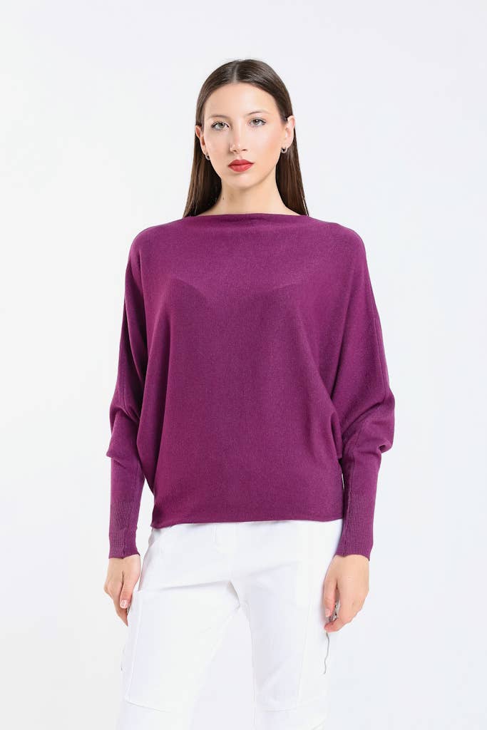 Tees by Tina Mylah Seriously Soft Batwing Sweater in Eggplant