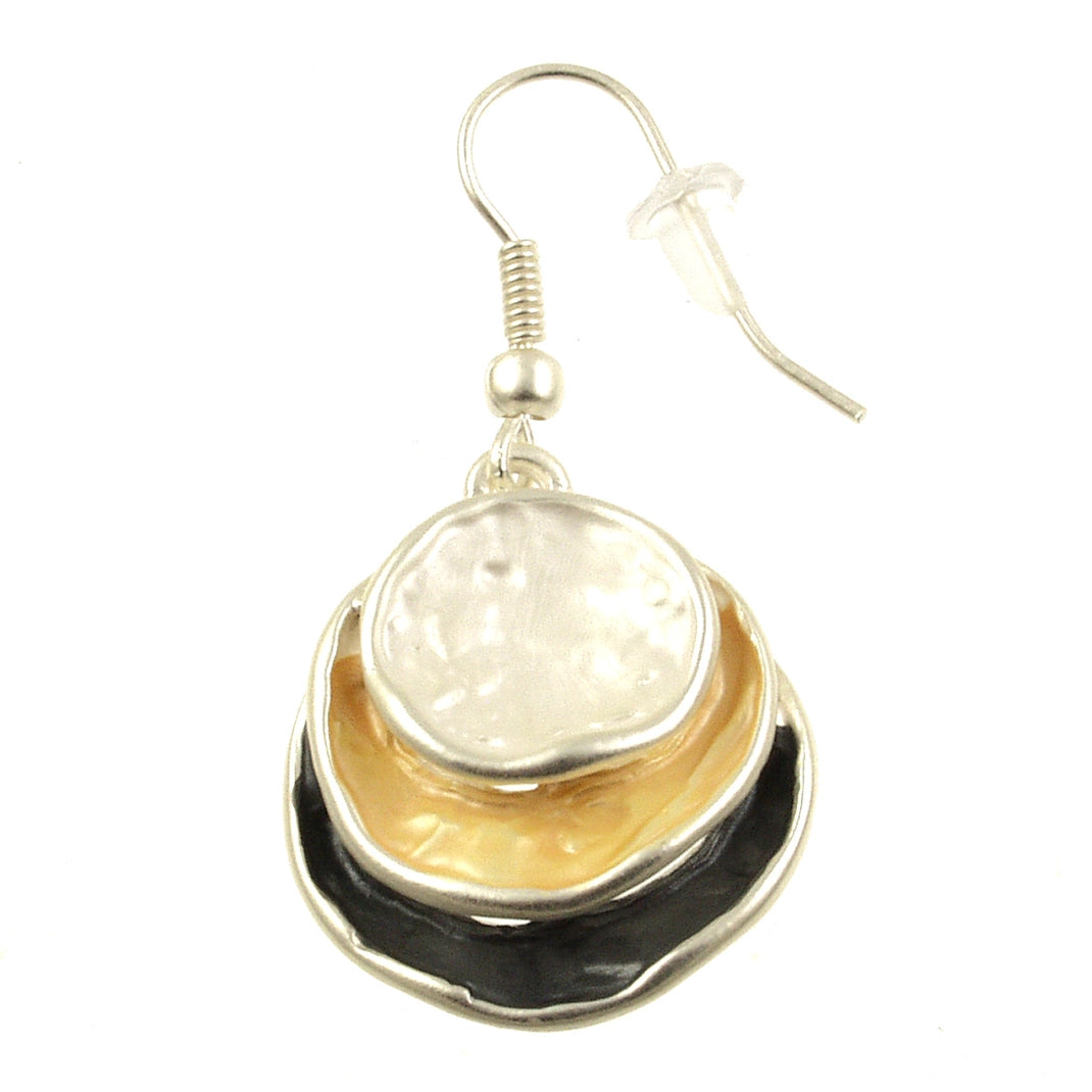 One of our most popular styles, the Triple Circle Earrings / Layered Circle Earrings feature multiple strands of richly textured, matte enamel circles that gently layer each other, creating a captivating, sculptural design with multi-dimensional appeal.