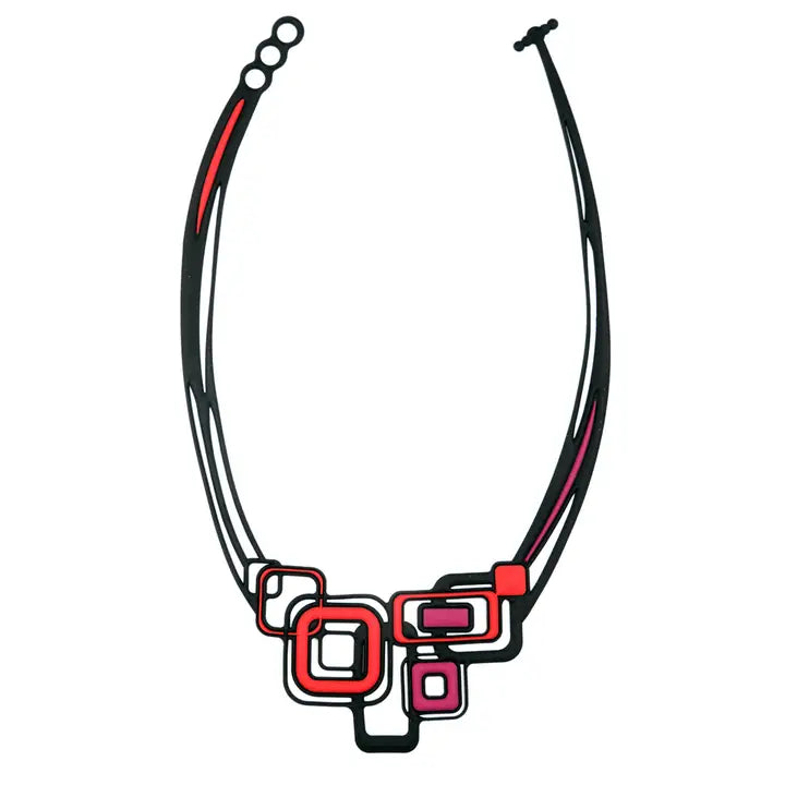 The elegant and unique designs of our Pythagoras collection offers a necklace with complex geometric shapes that combine purple and red or grey tones, allowing you to take your look to another level of mathematics. This piece is anything but square…enhance your look. Batucada jewellery is inspired by nature and made from 100% recyclable materials.