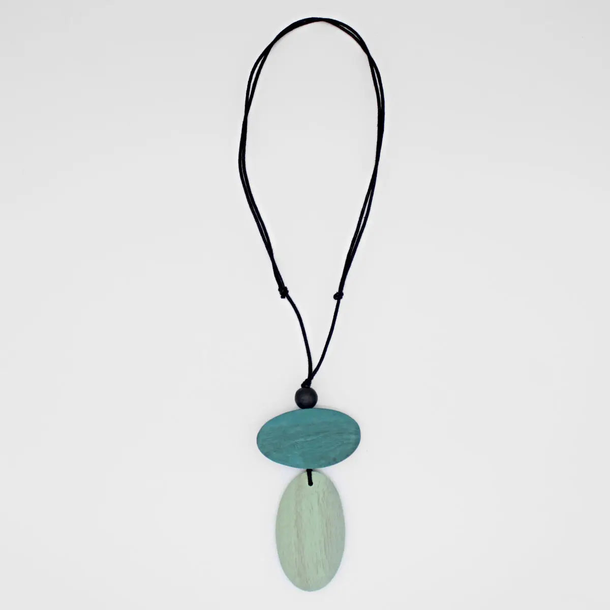 Looking for a unique and eye-catching accessory? Look no further than Sylca Designs' double wood bead lightweight Alaina pendant. Our statement necklace boasts gorgeous pastel aqua that will add a pop of color to any outfit. The adjustable cord ensures a perfect fit for any neck size. Elevate your fashion game with this stunning and versatile accessory. Adjustable Length: 20”-34” Pendant: 2" W